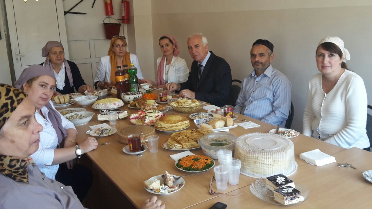 Начали мероприятие с поздравления учителей: прочитали стихи, исполнили песни, накрыли праздничный стол.