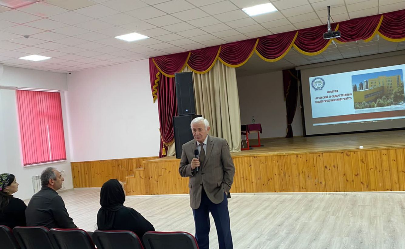 Учащиеся 10-11 класса МБОУ «СОШ 2 с. Новые Атаги им. Керимовой З. А.» принимали участие в беседе по профориентации с преподавателями ЧГПИ
