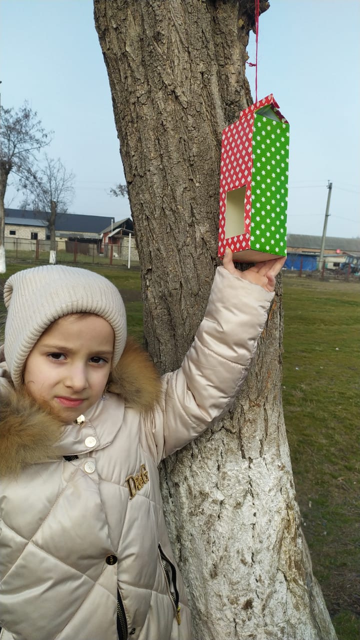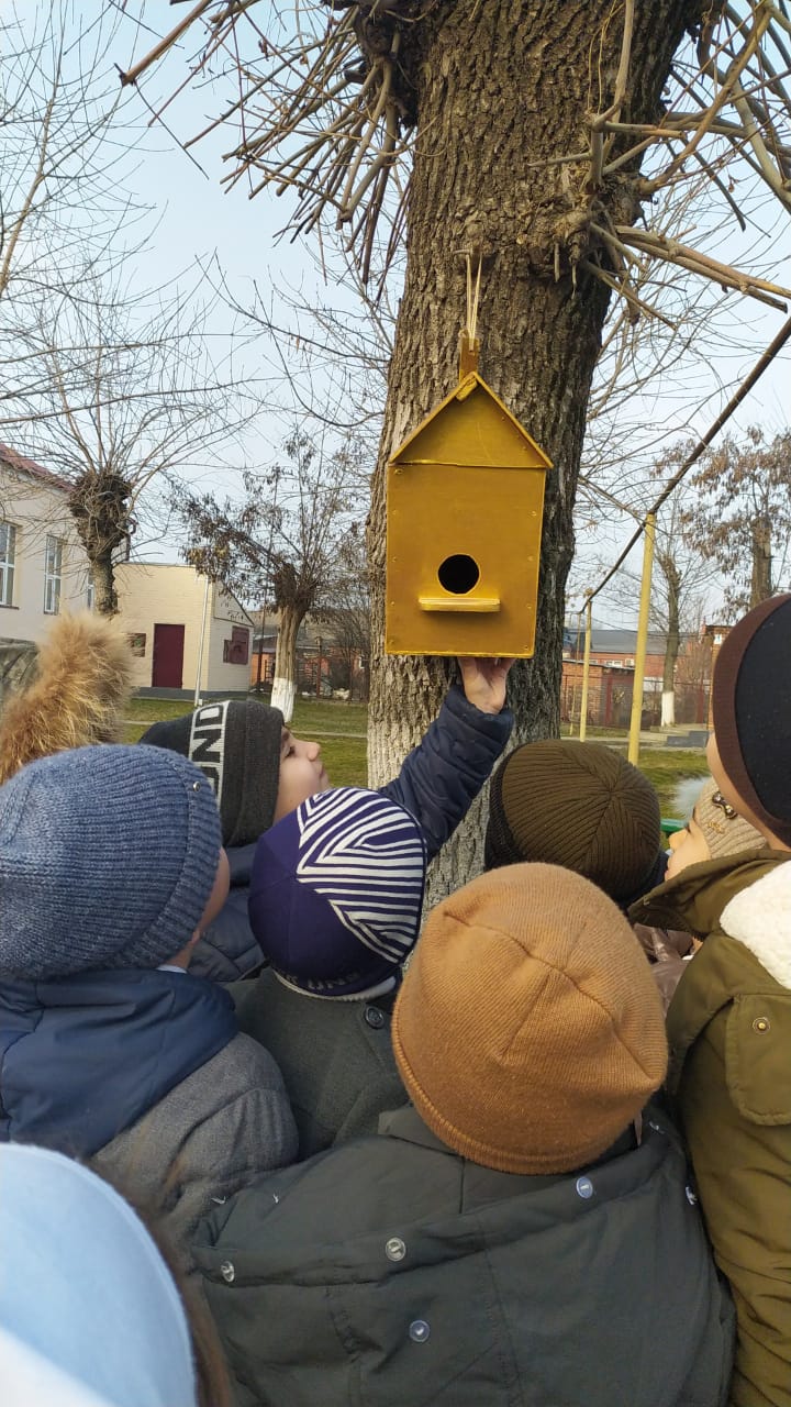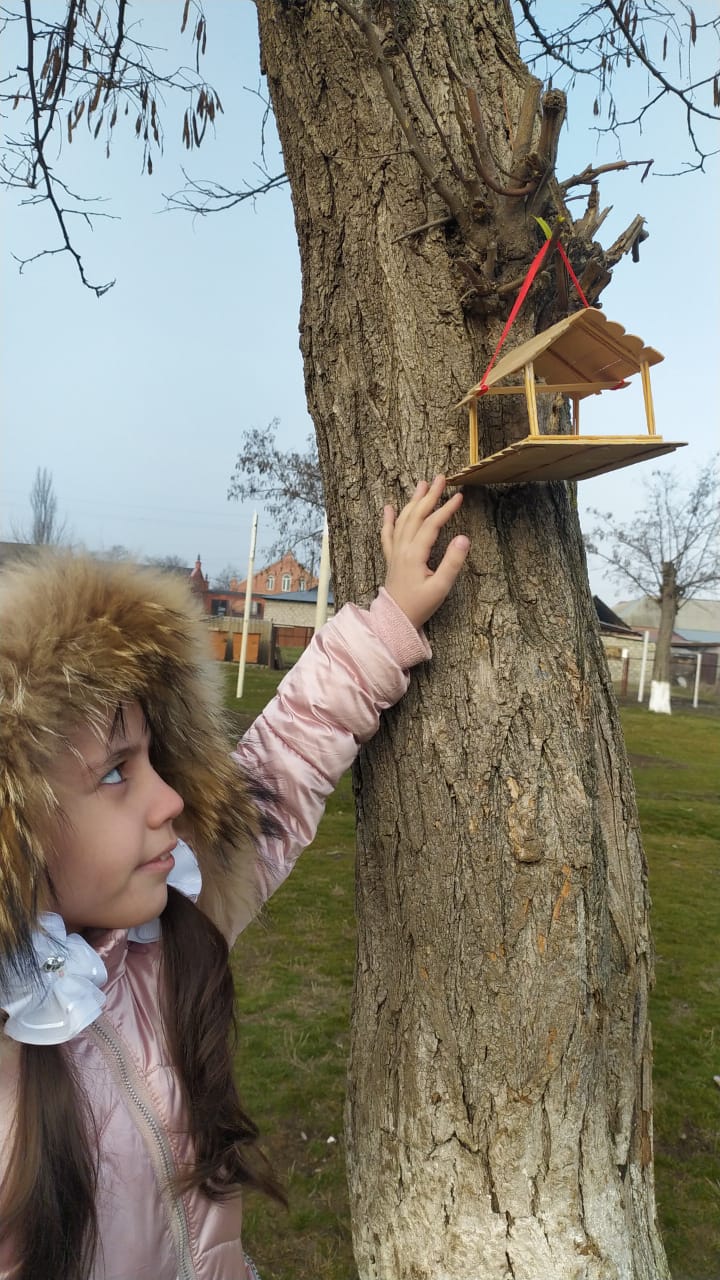 УЧАЩИЕСЯ 1 " А" класса подготовили место для птиц в нашем уютном дворе школы.