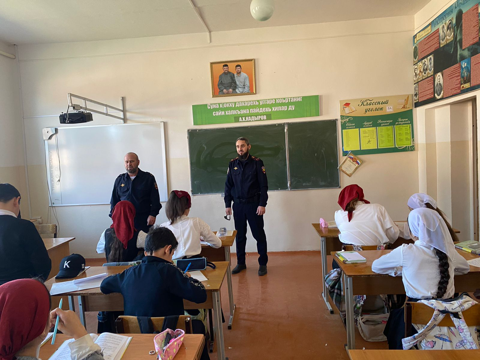 13.03.2023Инспектор ОПДН ОУУП и ПДН ОМВД России по Шалинскому району старший лейтенант полиции Сулиманов Делембек Султанович и участковый УУП ГУУПиПДН МВД России лейтенант полиции Гайрбеков Зелимхан Аюбович с. Новые Атаги провёл беседу с учащимися МБОУ « СОШ 2 с. Новые Атаги им. Керимовой З. А.» по профилактике правонарушений.