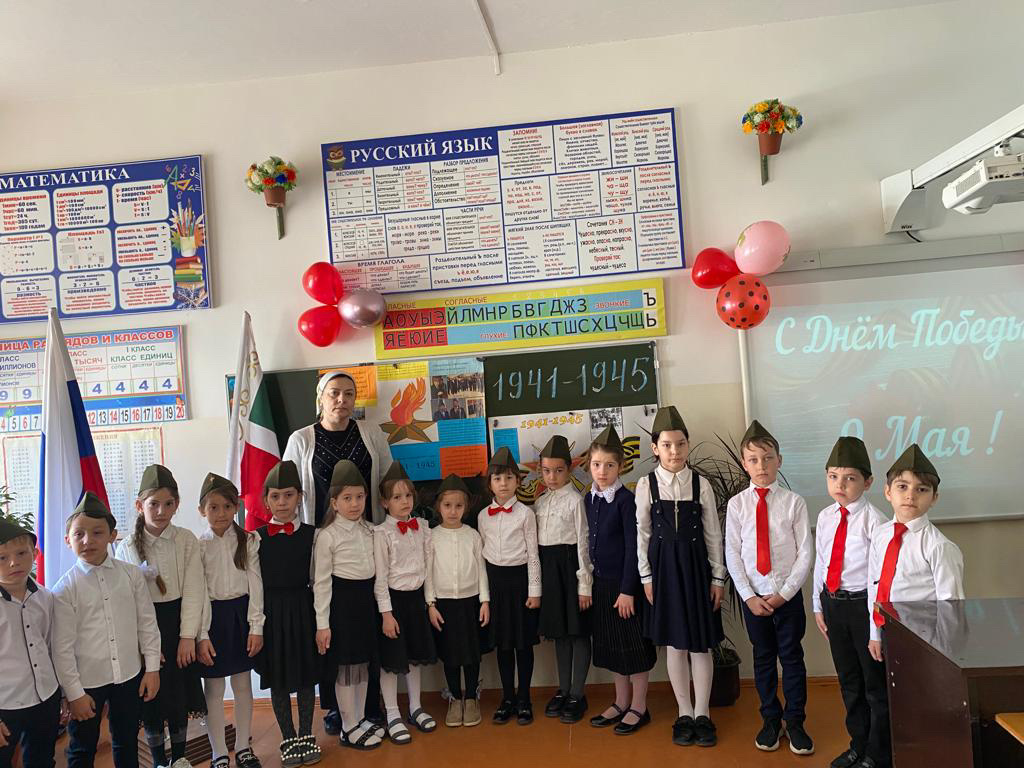В МБОУ «СОШ 2 с.Новые Атаги им.Керимовой З.А.» проведены классные часы ко Дню Победы🌹