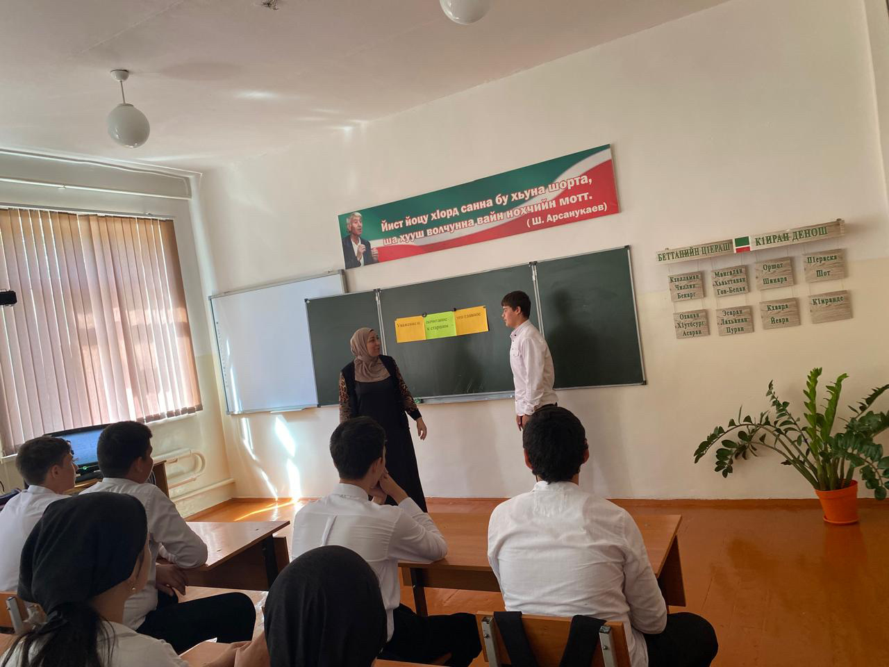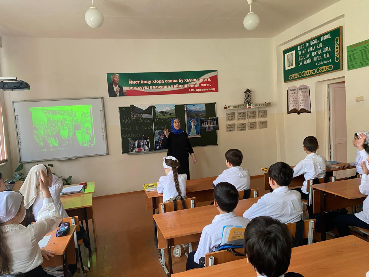 ✅Ко дню Чеченского языка в школе с учащимися проведены беседы, классные часы, а так проведена встреча с Имамом с. Новые Атаги Ахмадовым Турпалом Руслановичем. Имам села в своей беседе рассказал учащимся об обычаях и традициях чеченского народа.