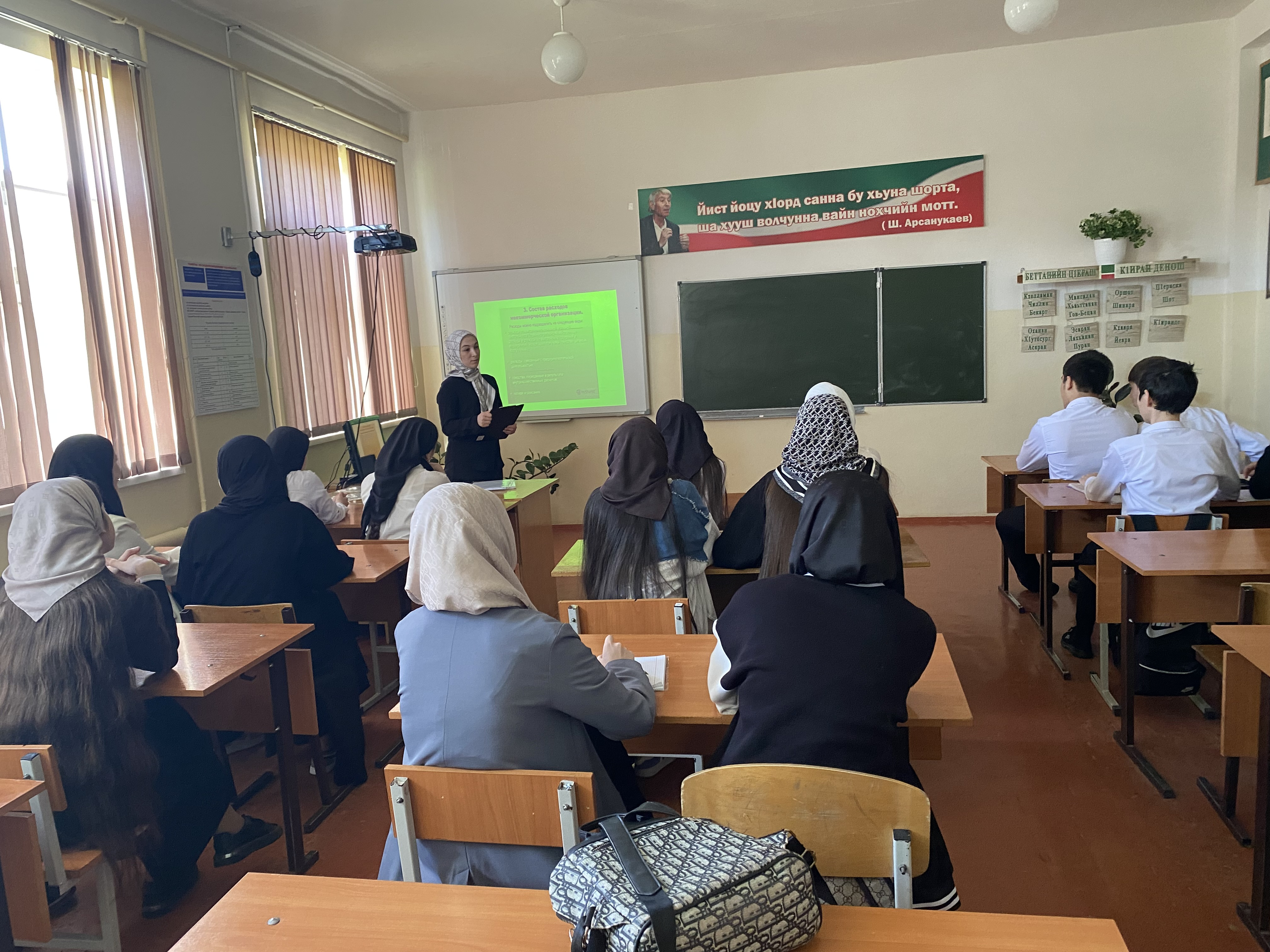 17.04.2025Отделом в Шалинском районе УФСБ России по Чеченской Республике совместно с МУ «Отдел образования Шалинского муниципального района Чеченской Республики» проведено профилактическое мероприятие в МБОУ «СОШ №2 с. Новые Атаги им. Керимовой З.А.» на тему: «Деятельность некоммерческих организаций, направленная на дестабилизации социально-политической обстановки на территории Чеченской Республики»